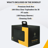 Card Guardian - Toploader Bundle | Deck Box with 100 Toploaders & Penny Sleeves with a Cleaning Cloth (Black)